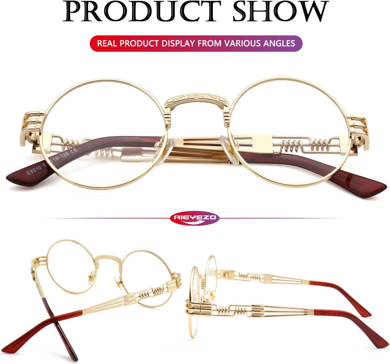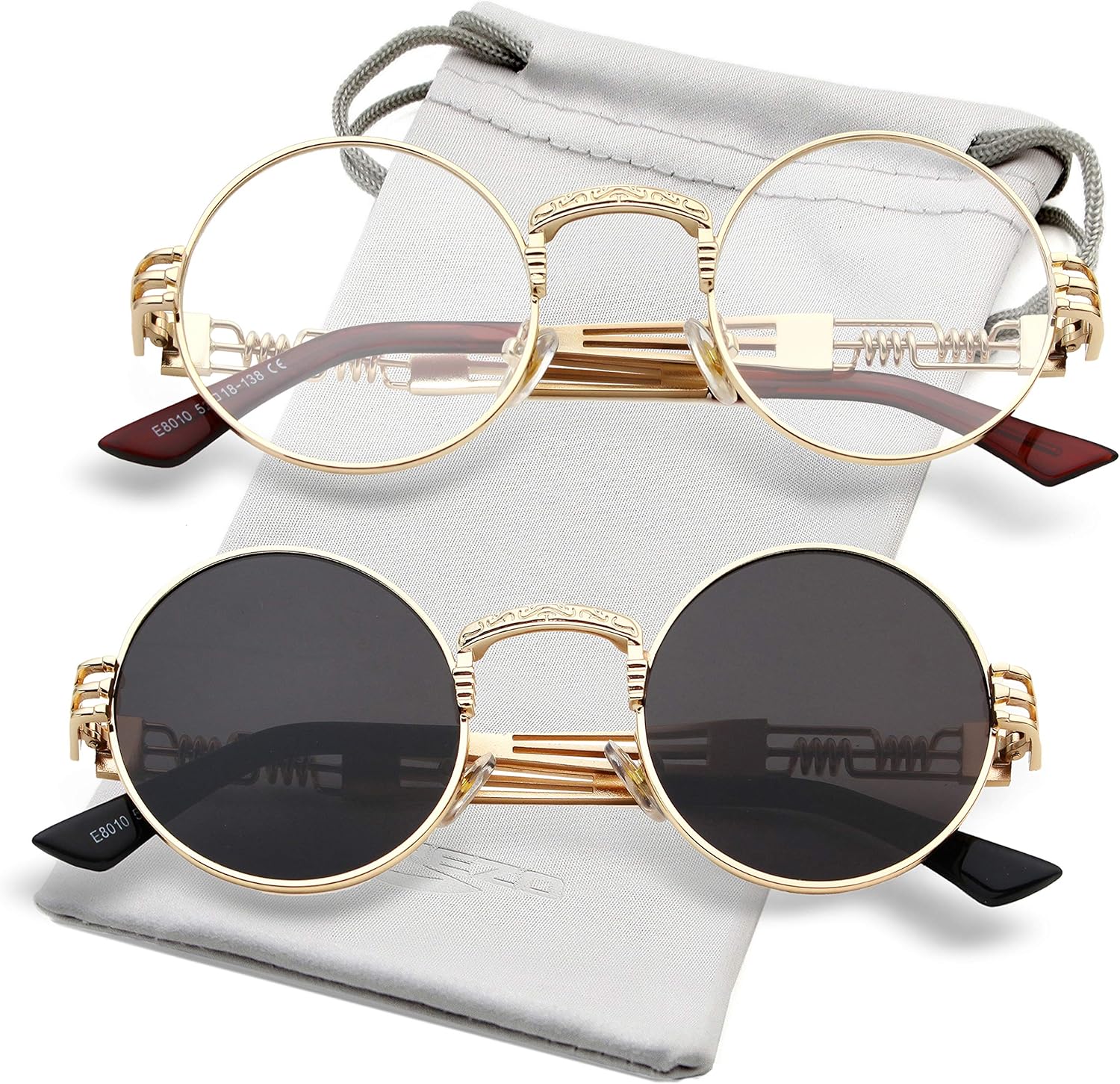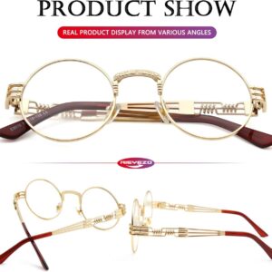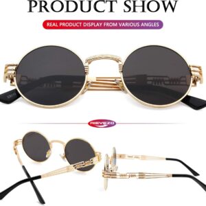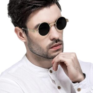 AIEYEZO Round Steampunk Sunglasses for Men Women Retro Circle Hippie Glasses Metal Frame 100% UV Blocking Lens