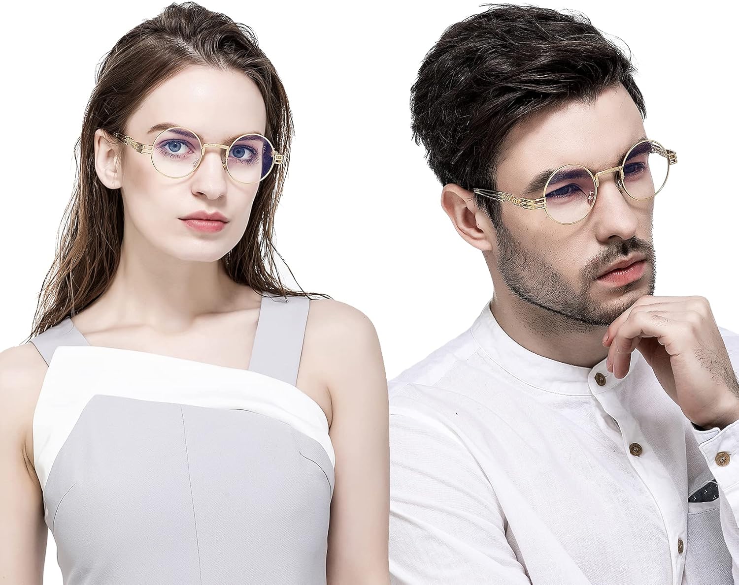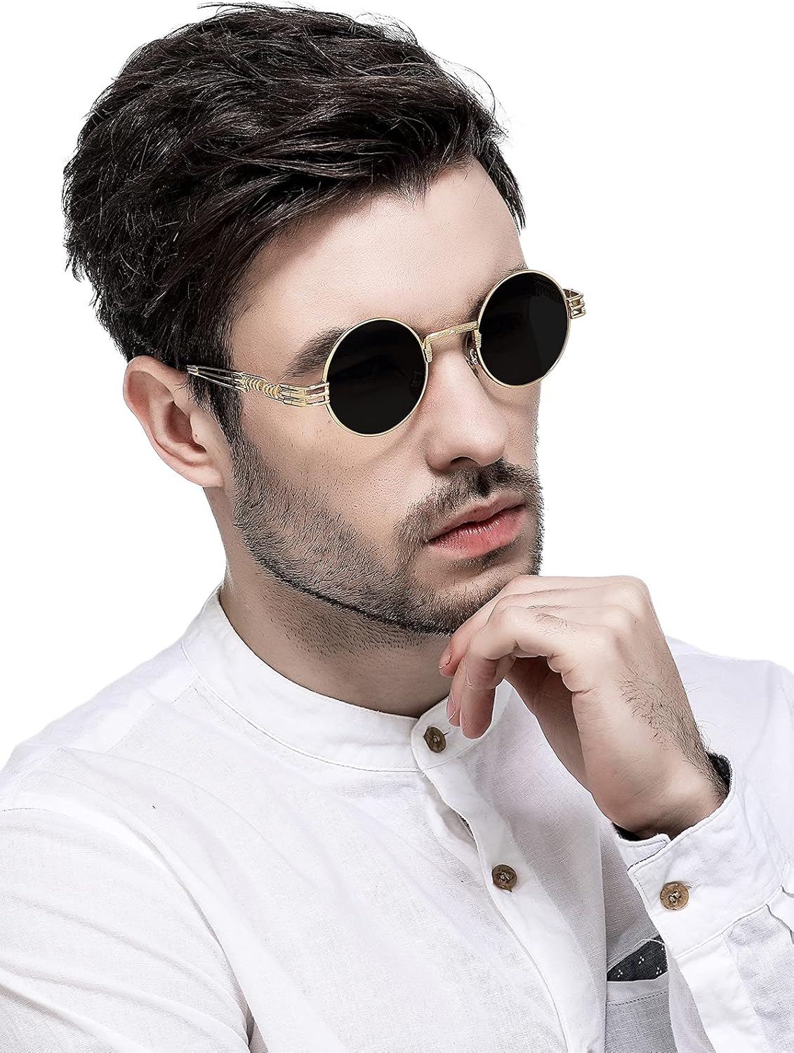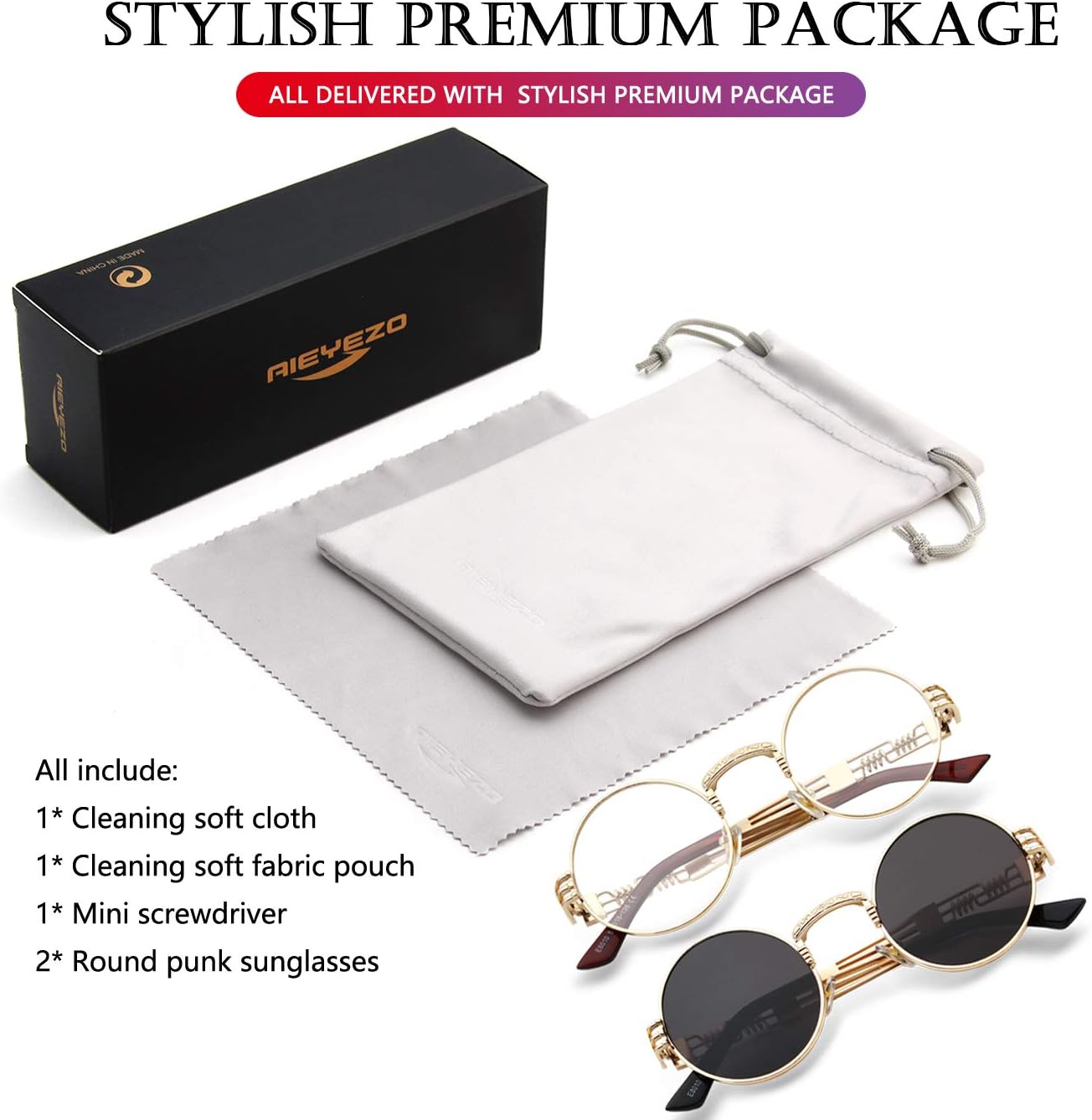 AIEYEZO Round Steampunk Sunglasses for Men Women Retro Circle Hippie Glasses Metal Frame 100% UV Blocking Lens