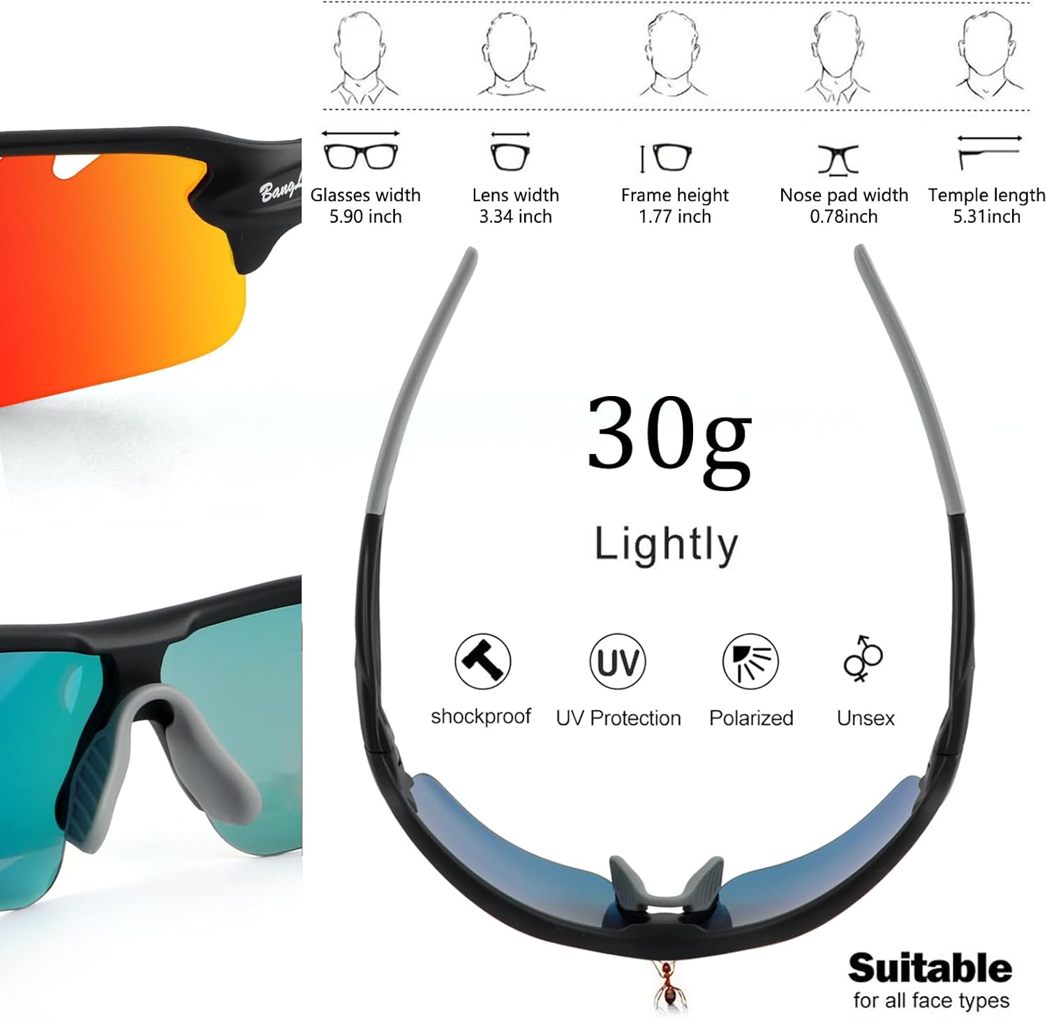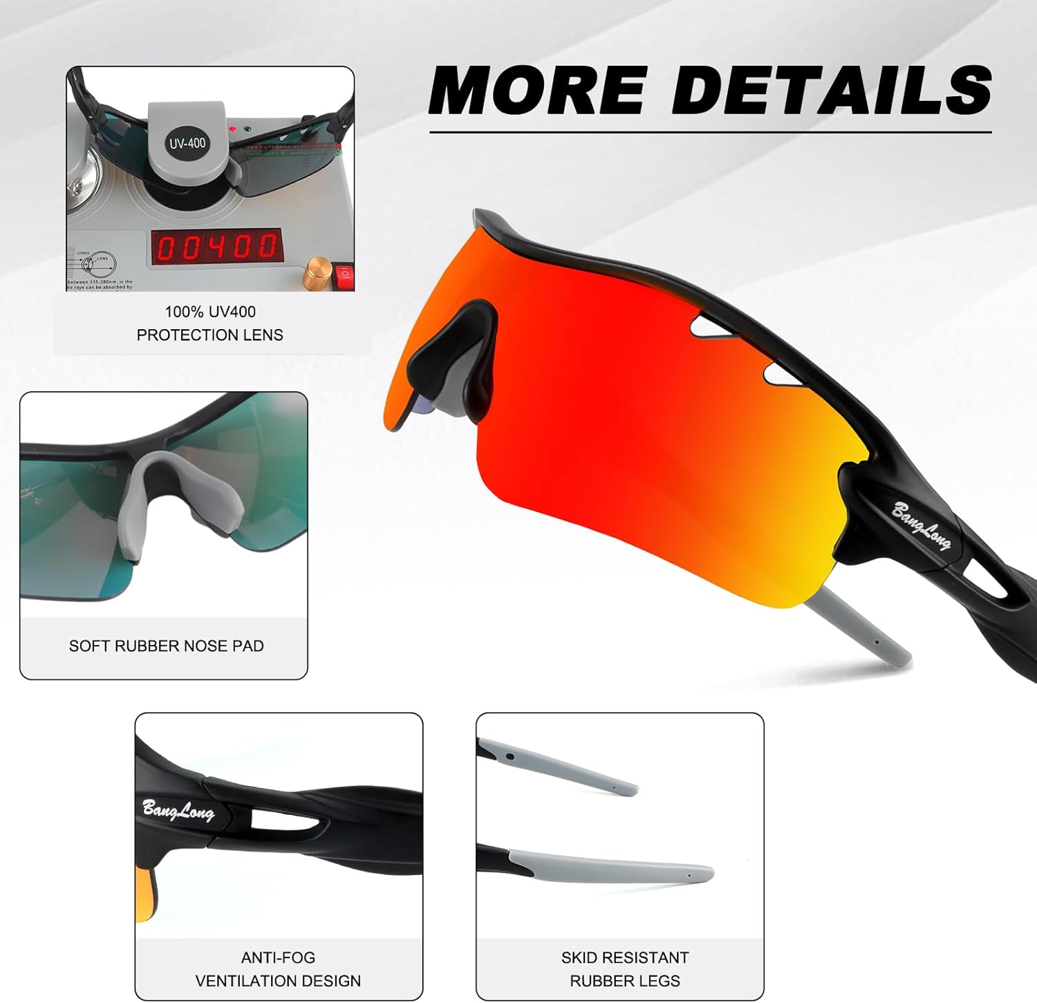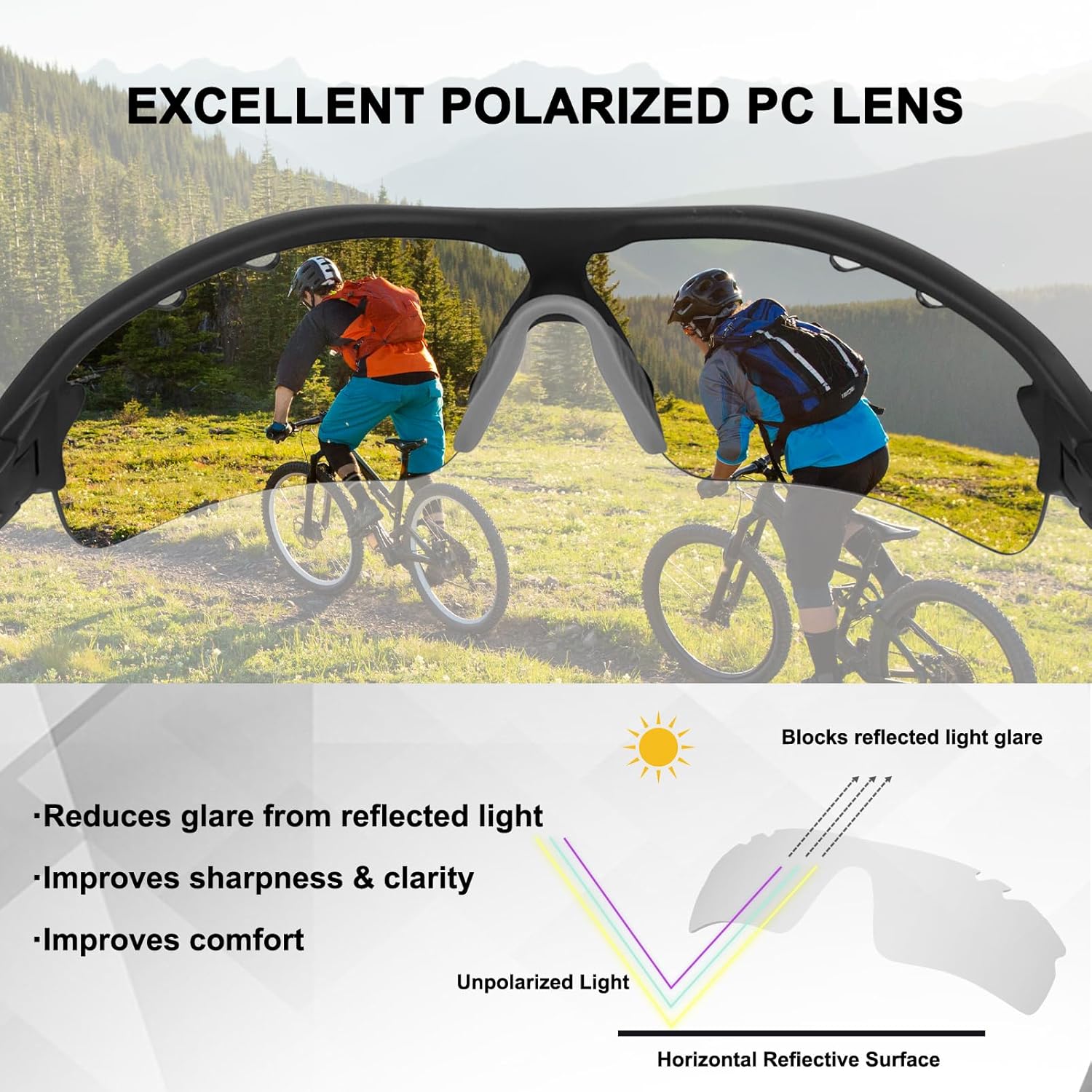 All lens of these cycling sunglasses have UV400 protection,block harmful UVA & UVB rays.