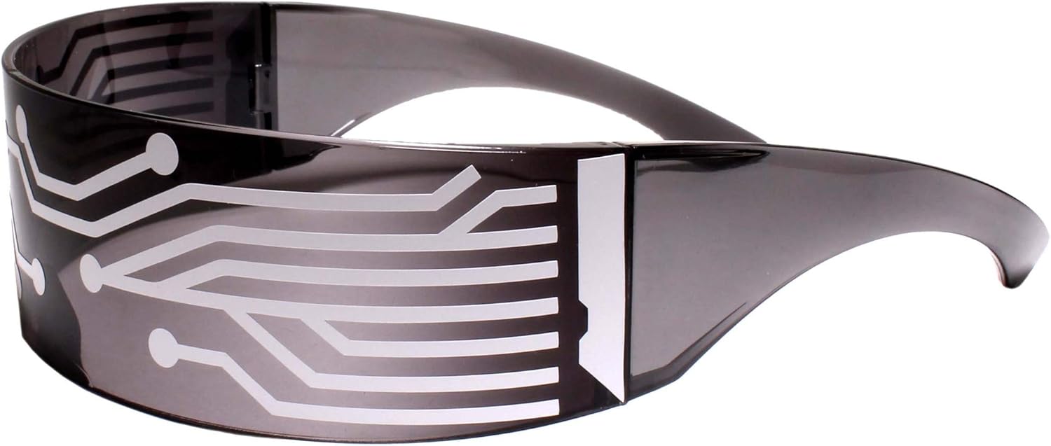 These fun futuristic sunglasses feature a sleek, space-age design. These are perfect for cosplay, role playing, comic con, halloween, or themed parties such as: Star Trek, X-Men, Anime, Star Wars, Alien, Robot, Punk Rock. OR just for fun. These are also great gift for any anime or cosplay fan.