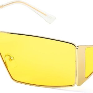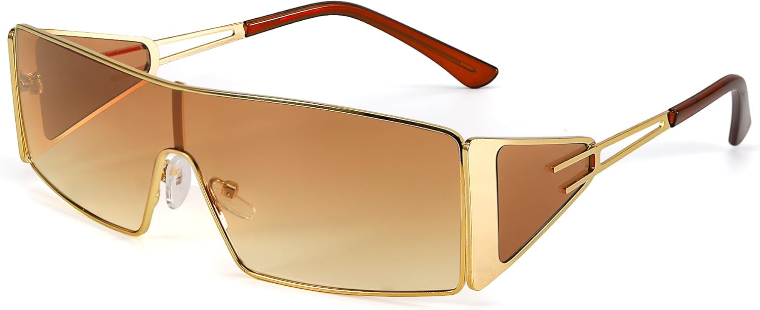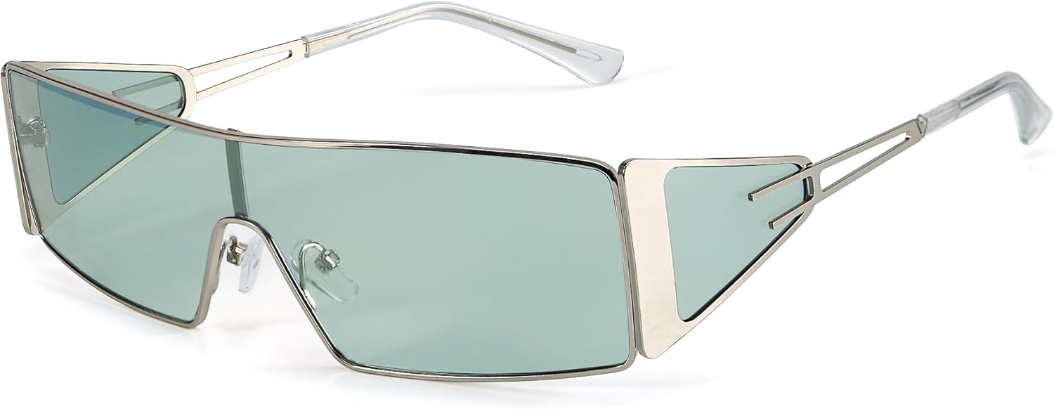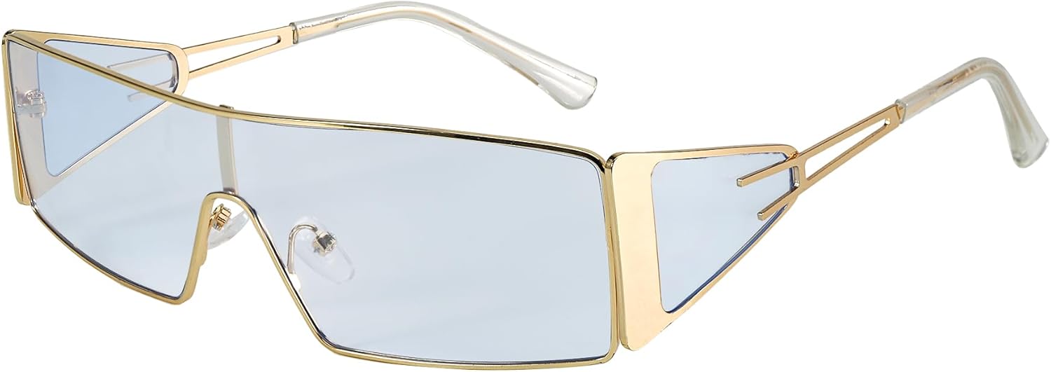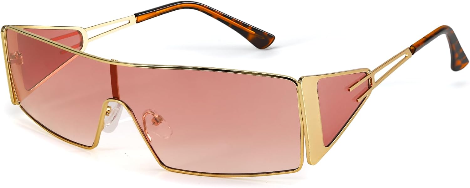 FancyPink Y2K Sunglasses for Women- Retro Rectangular Wrap Around Glasses -2000S Non-polarized Sun Glasses Metal Shades