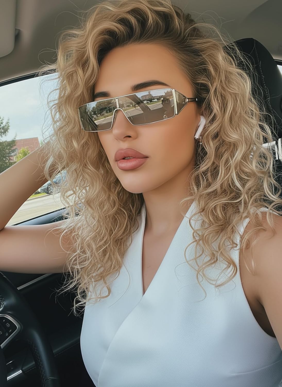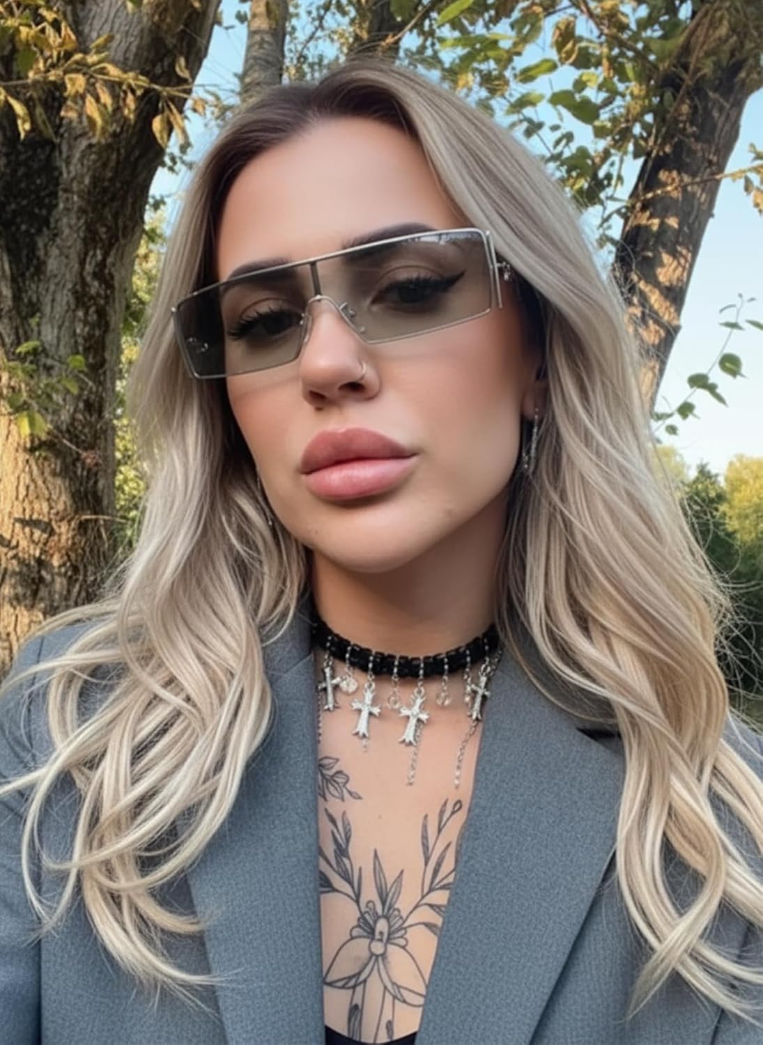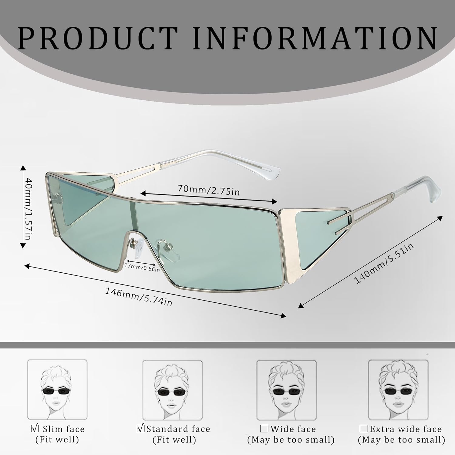 FancyPink Y2K Sunglasses for Women- Retro Rectangular Wrap Around Glasses -2000S Non-polarized Sun Glasses Metal Shades