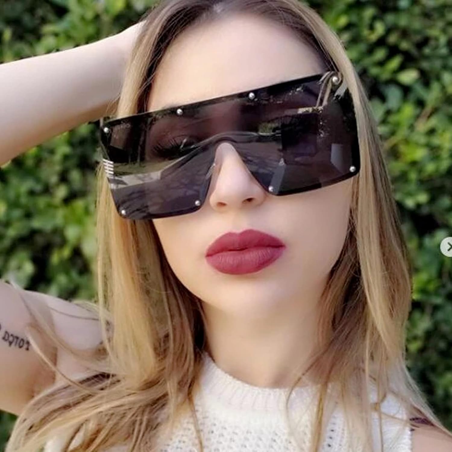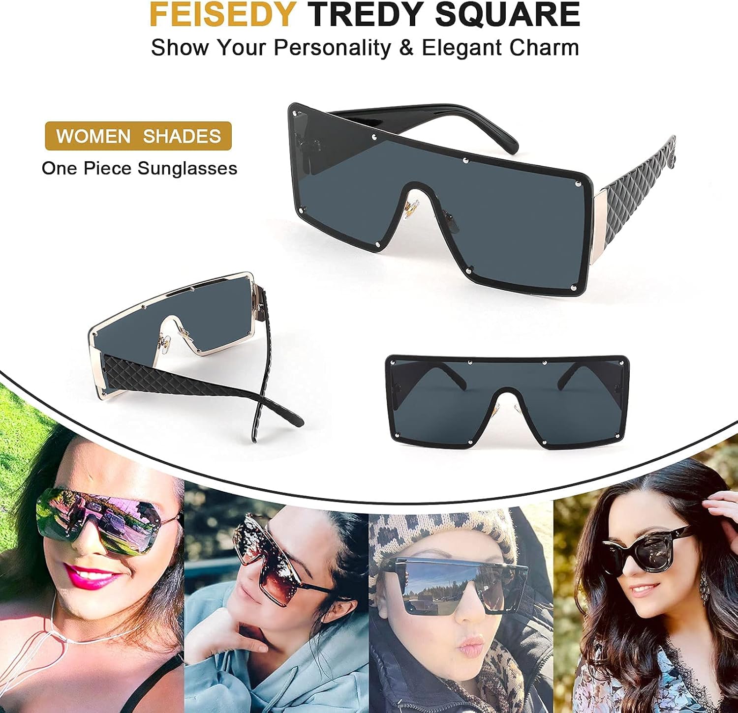 FEISEDY Oversized Square Sunglasses for Women Men Flat Top Shield Sunglasses One Piece Frameless Shades B2767