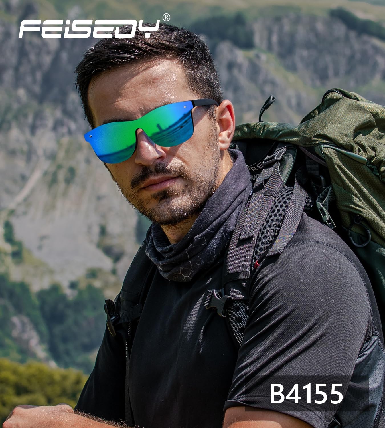 FEISEDY Trendy Rimless Mirrored One Piece Lens Sunglasses Reflective Sun Glasses B4155
