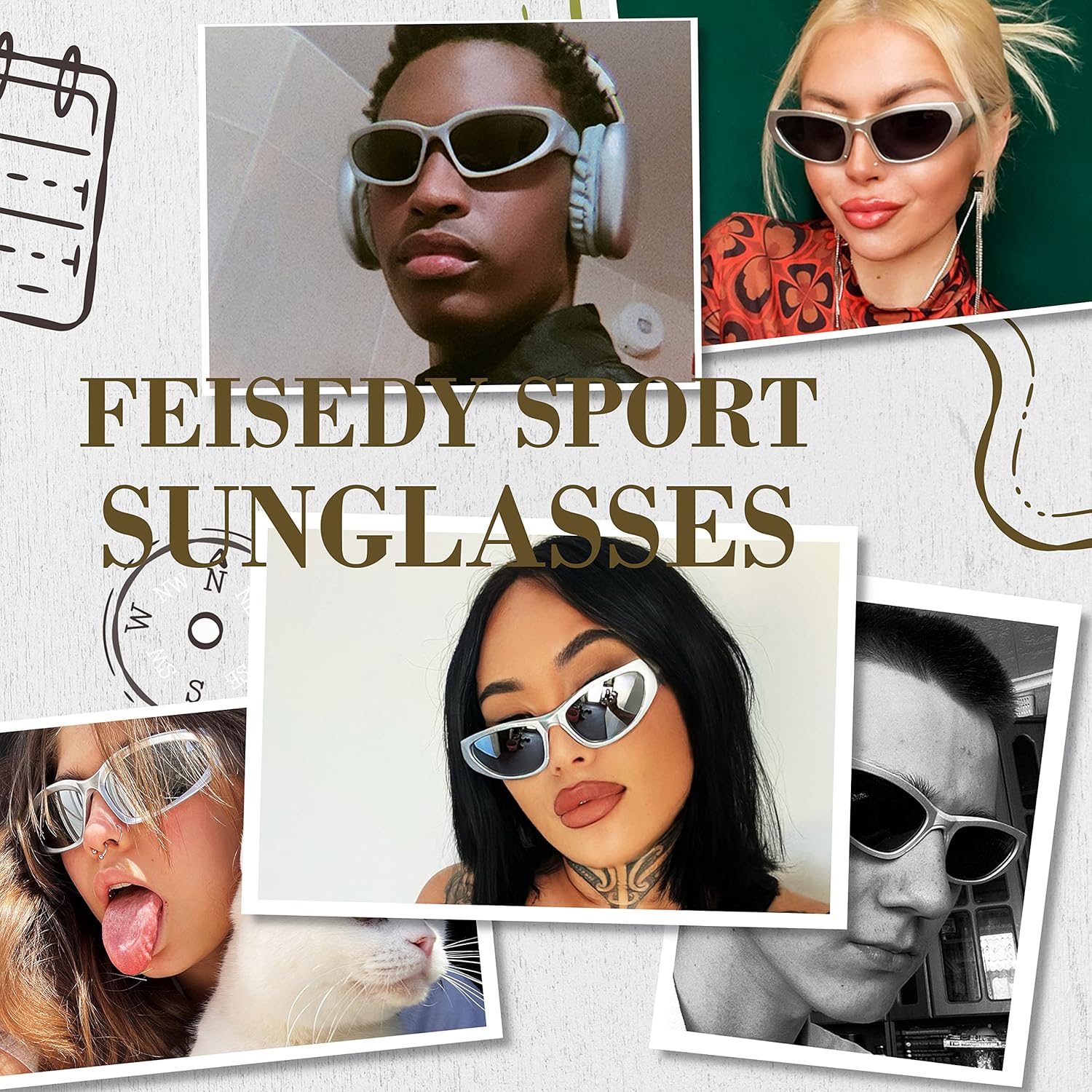 FEISEDY Women Men Futuristic Shield Sports Narrow 90s Sunglasses Dark Lens Goggles Punk Y2K Sun Glasses B2936
