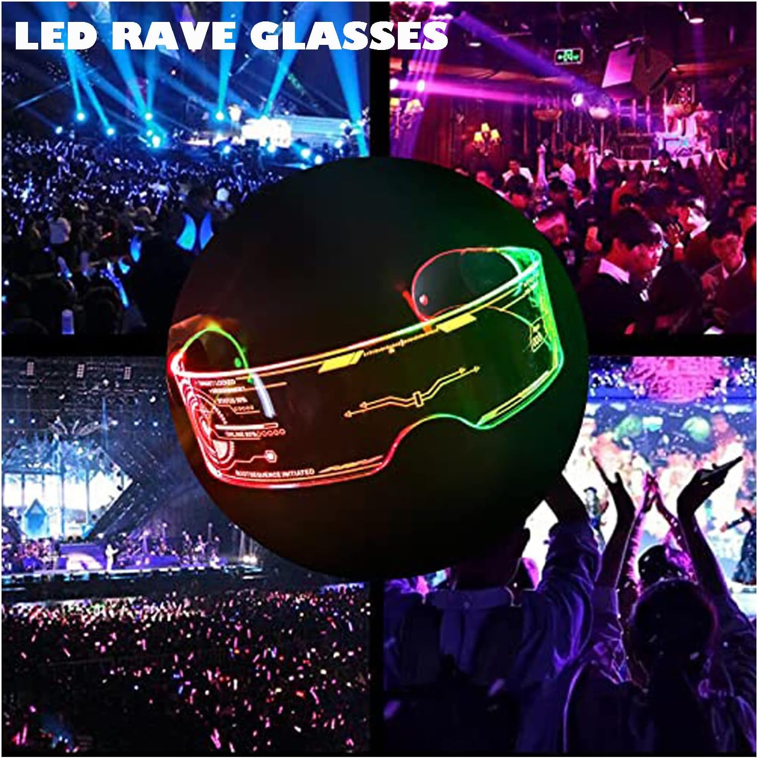 - To Be The Focus— Neon glasses are super cool when lighting up in a dark environment, you can enjoy everyone’s attention. No matter where you go, you are the focus of the public. Suitable for night bars, DJs, costume parties, rave parties, photos, photography, music festivals, concerts, Halloween, Carnivals, etc.