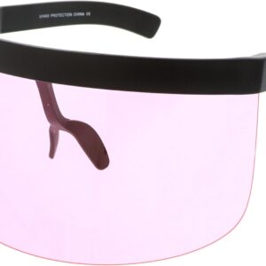DetailsCreate an out of this world look with these futuristic visor sunglasses. Featuring an oversize frame with a flat top design and a matte finish, these shield sunglasses are finished with a colored mirror mono lens for a unique look. Perfect for parties or music festivals, these novelty sunglasses are sure to make a statement. Made with a plastic based frame, double barrel hinges, and a 100% UV protected lens.