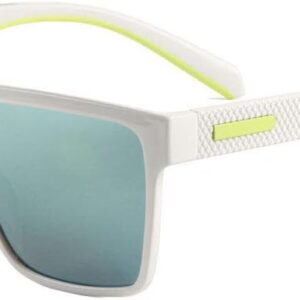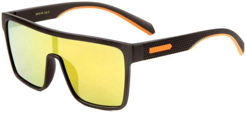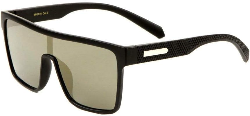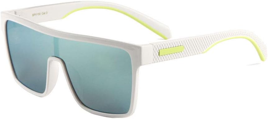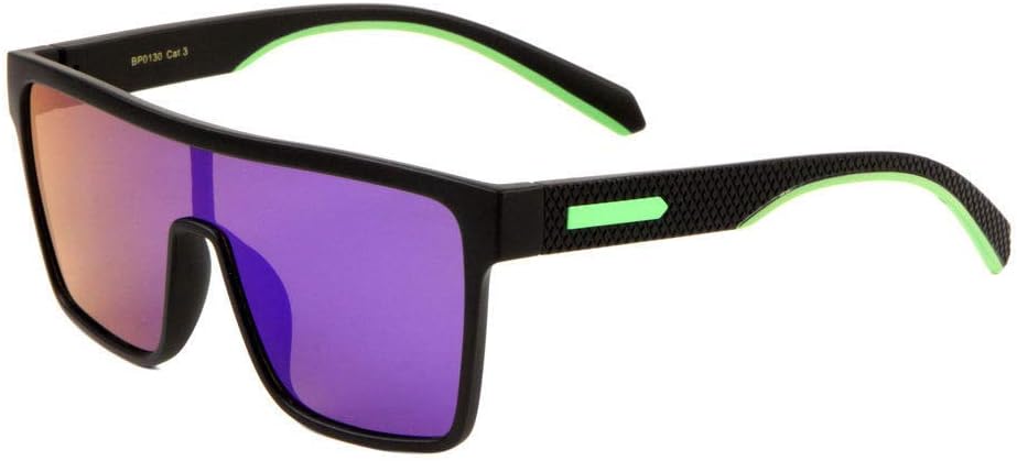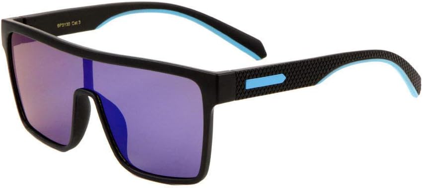 Futuristic Athletic Square Flat Top One Piece Shield Sunglasses by Dweebzilla. Design features a sporty inspired multicolored flat top square frame.