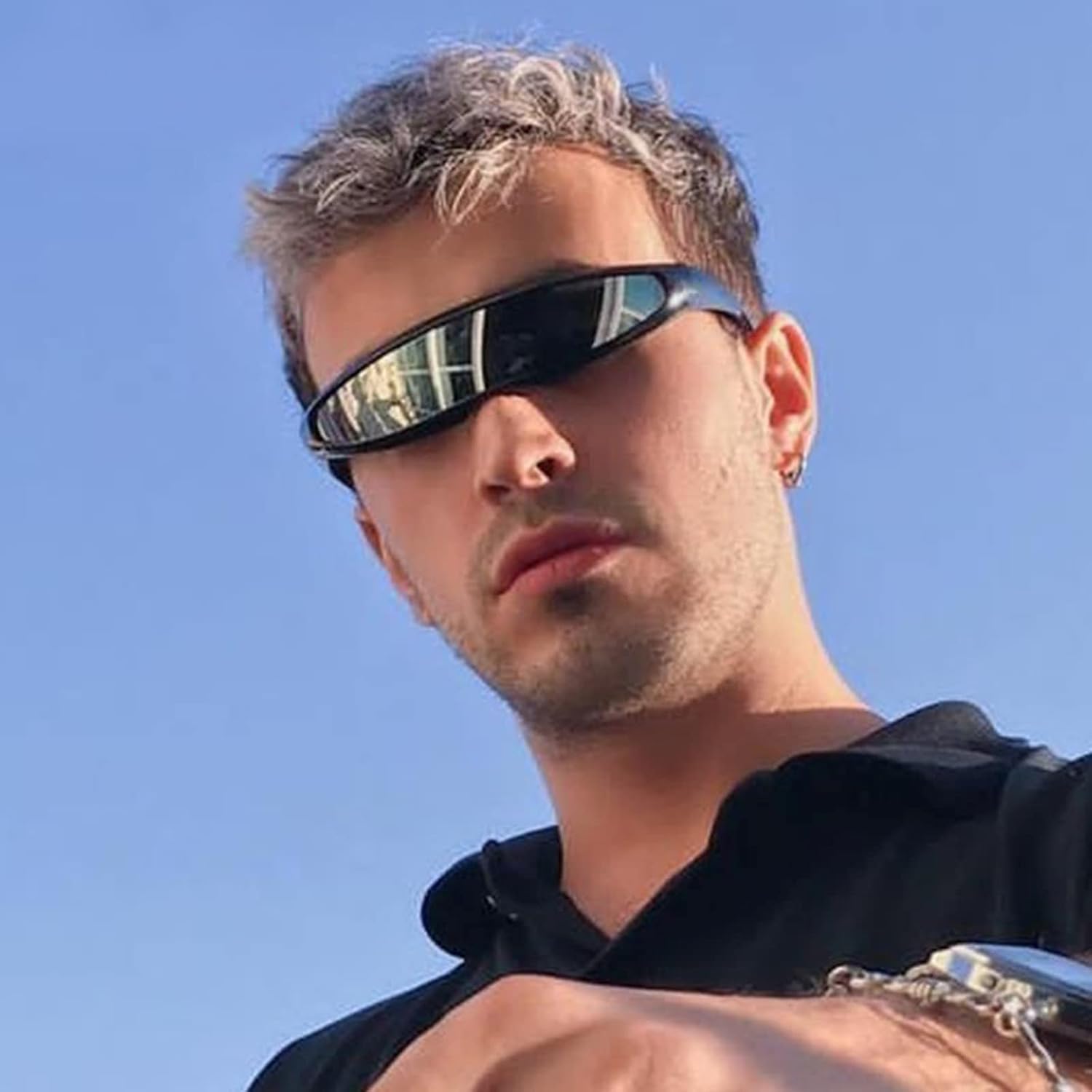 KFPH Futuristic Narrow Sunglasses Robot Space Rave Futuristic Glasses Personality Cosplay Cyclops Cool Glasses