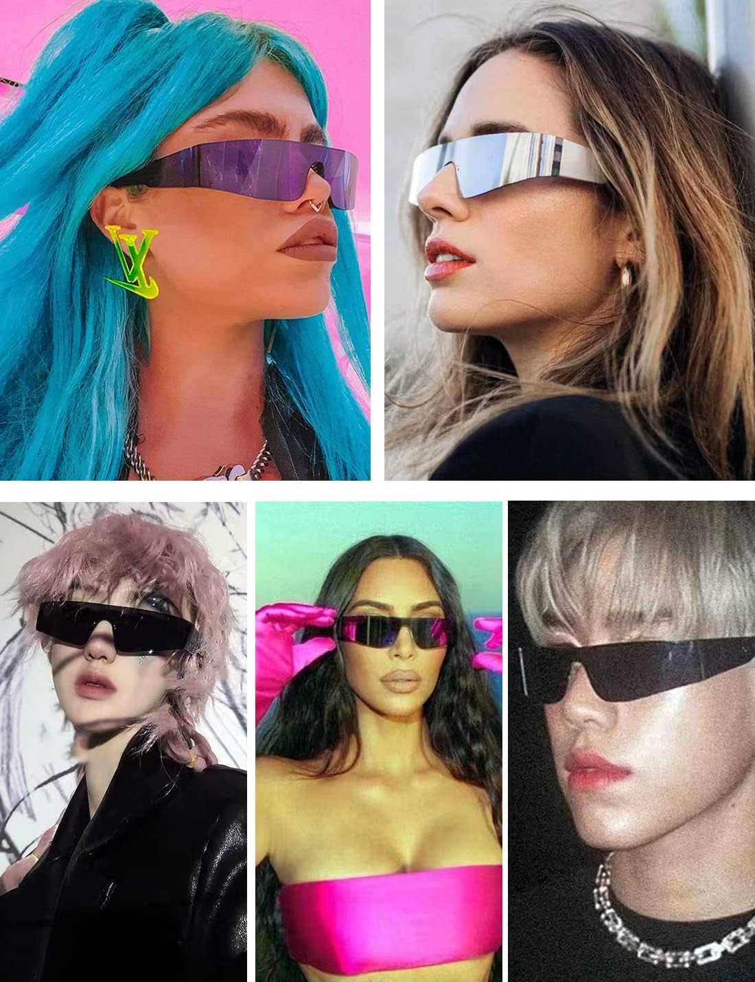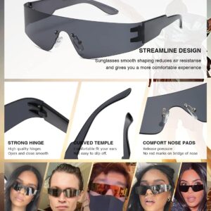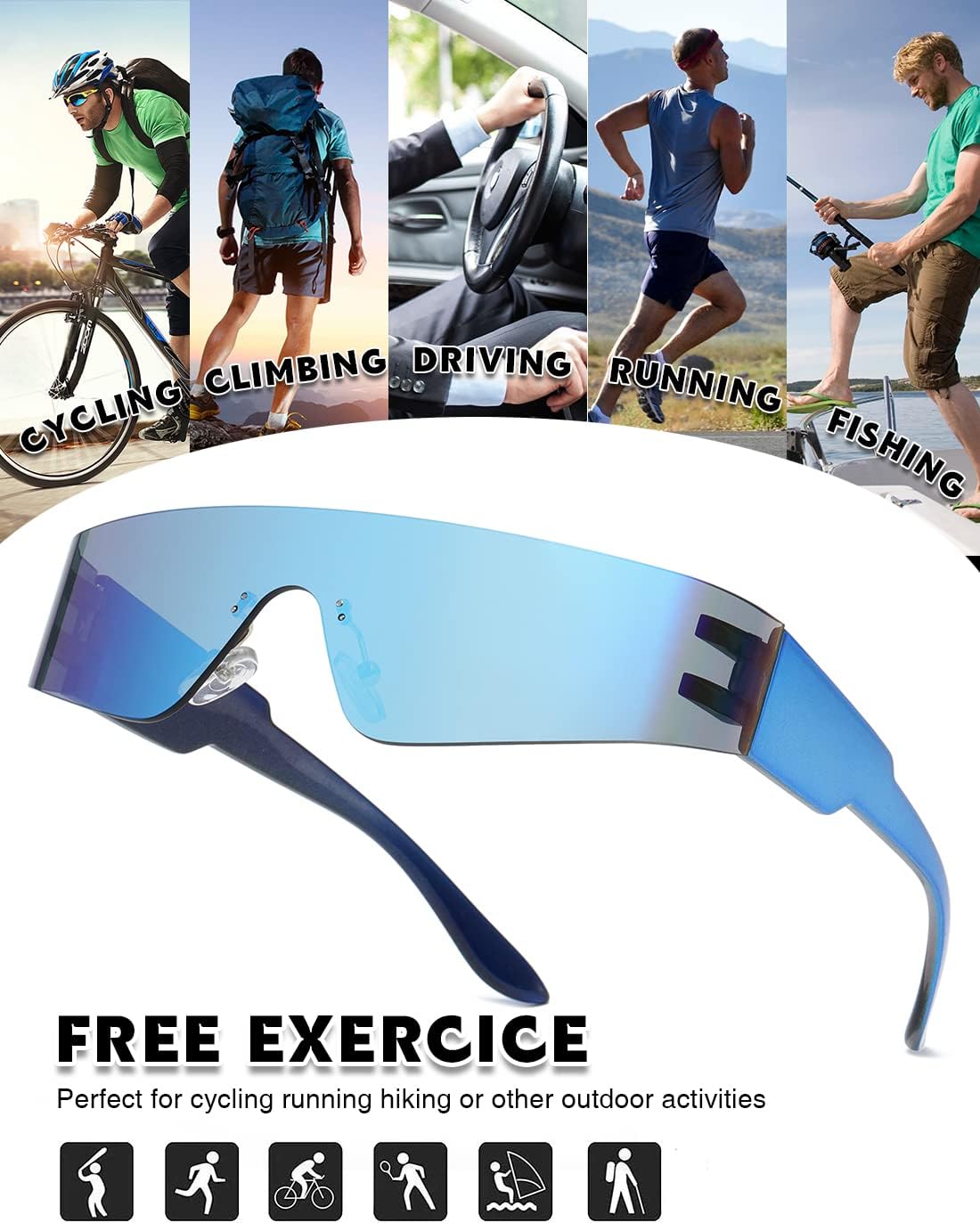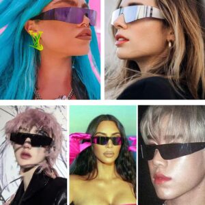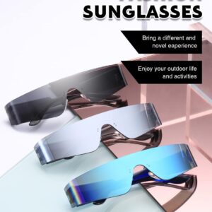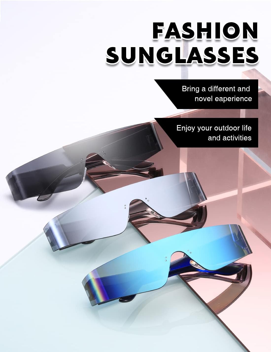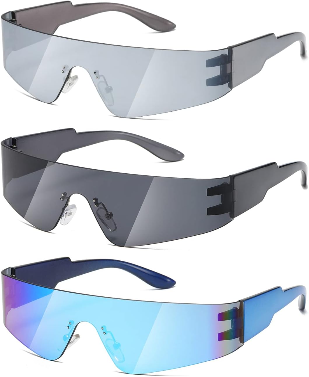 MASDUN Trendy Rimless Futuristic Wrap Around Sunglasses Women Men,Cyberpunk Visor Shades Fashion Sun Glasses (3 Pack)