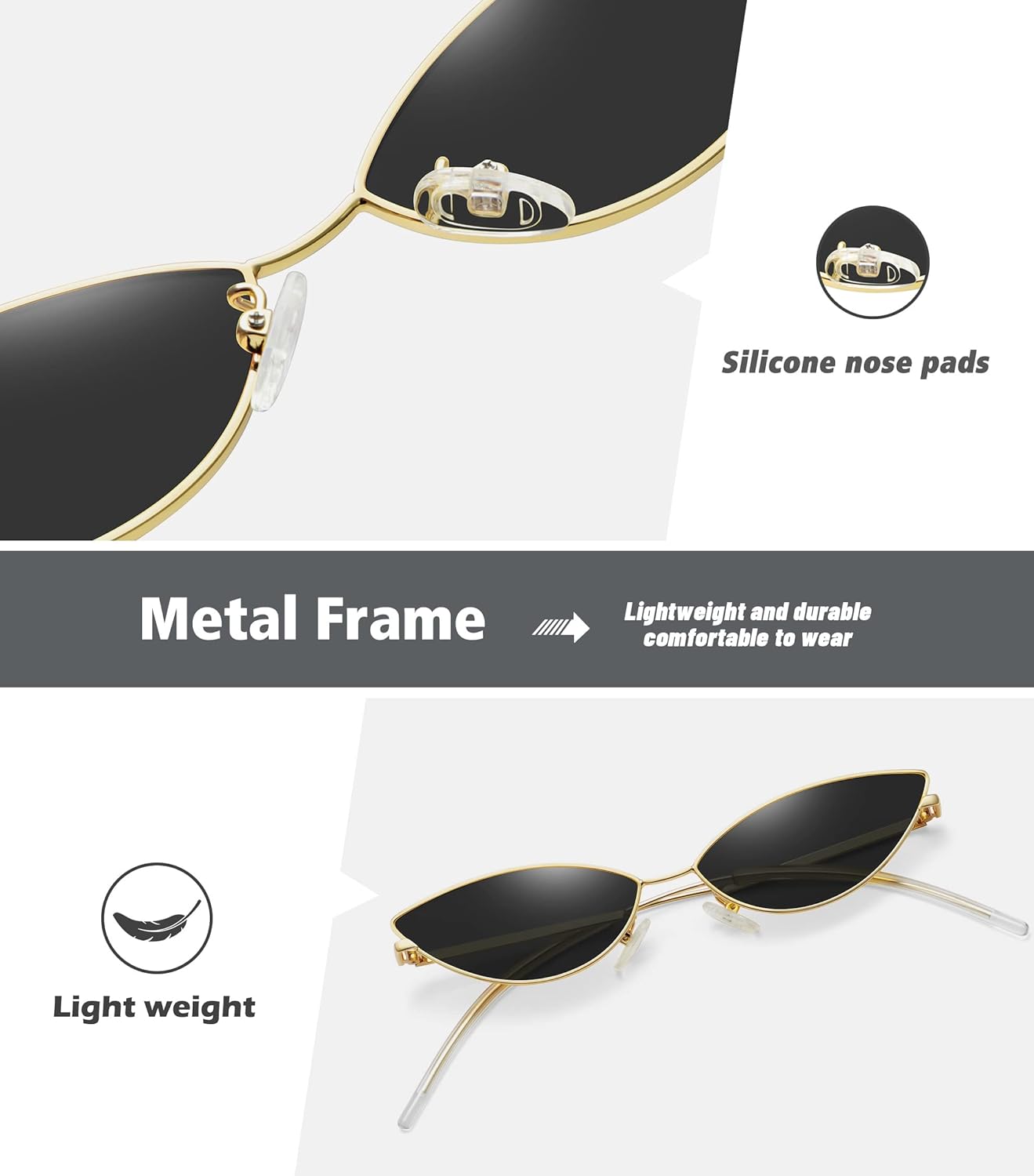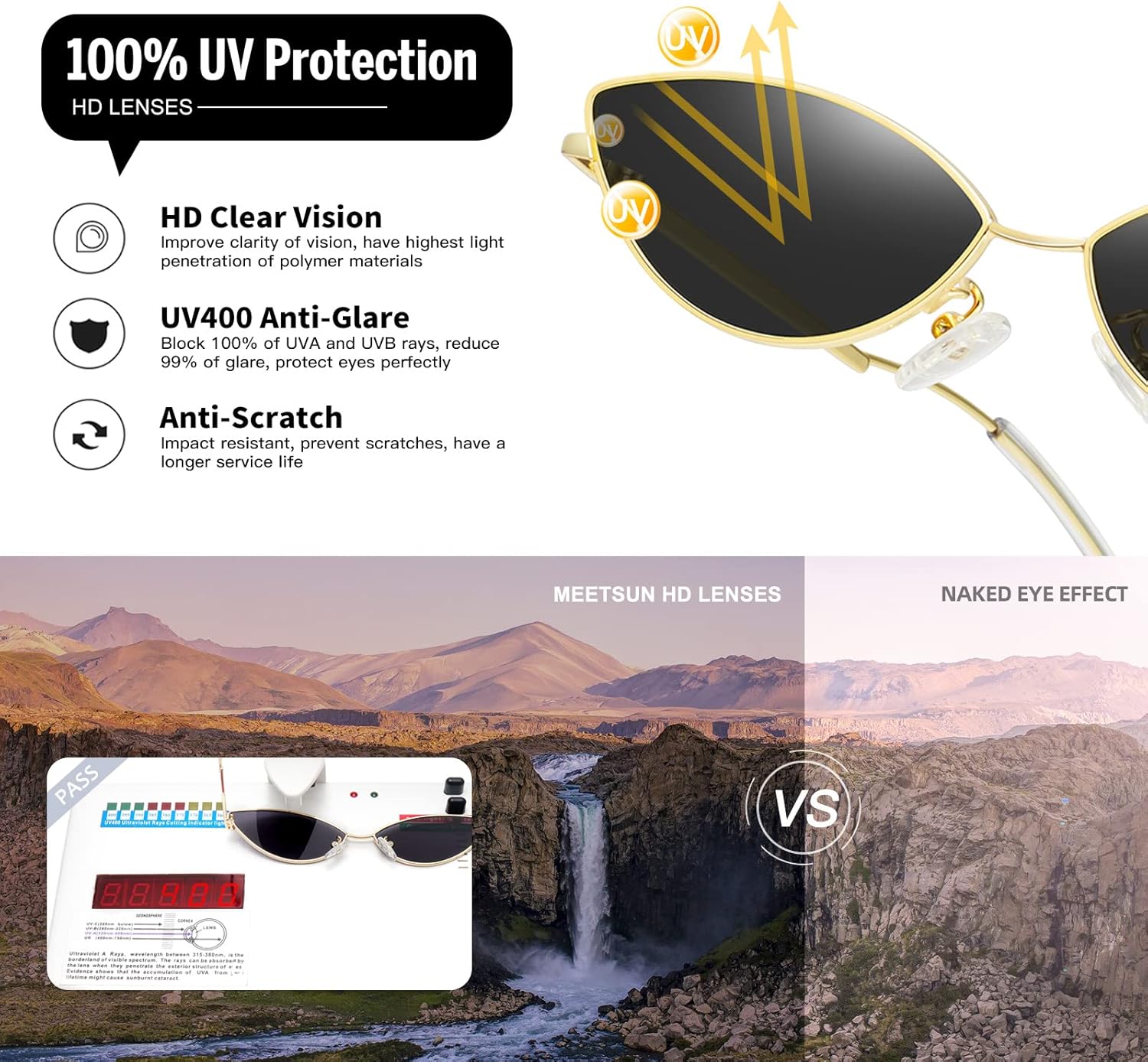 MEETSUN Retro Vintage Cat Eye Sunglasses For Women Men Narrow Small Oval Glasses Petals Shape Curved Temple Design