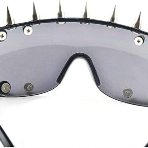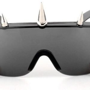 A one-of-kind find for anyone into spike fashion, punk rock or just want to just want to go a dangerous look. Please handle these frames with caution! Made with metal spikes, plastic hinges and UV protected polycarbonate shield lens.