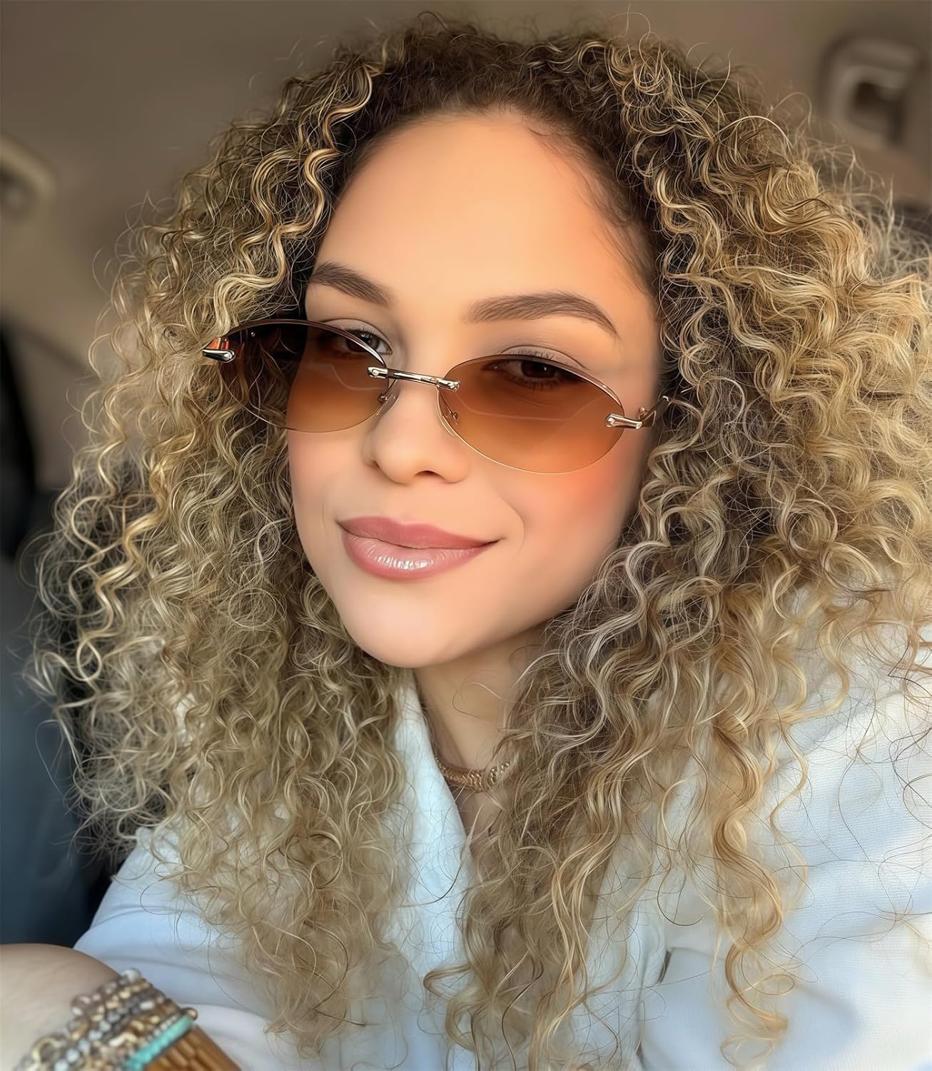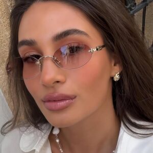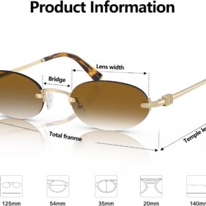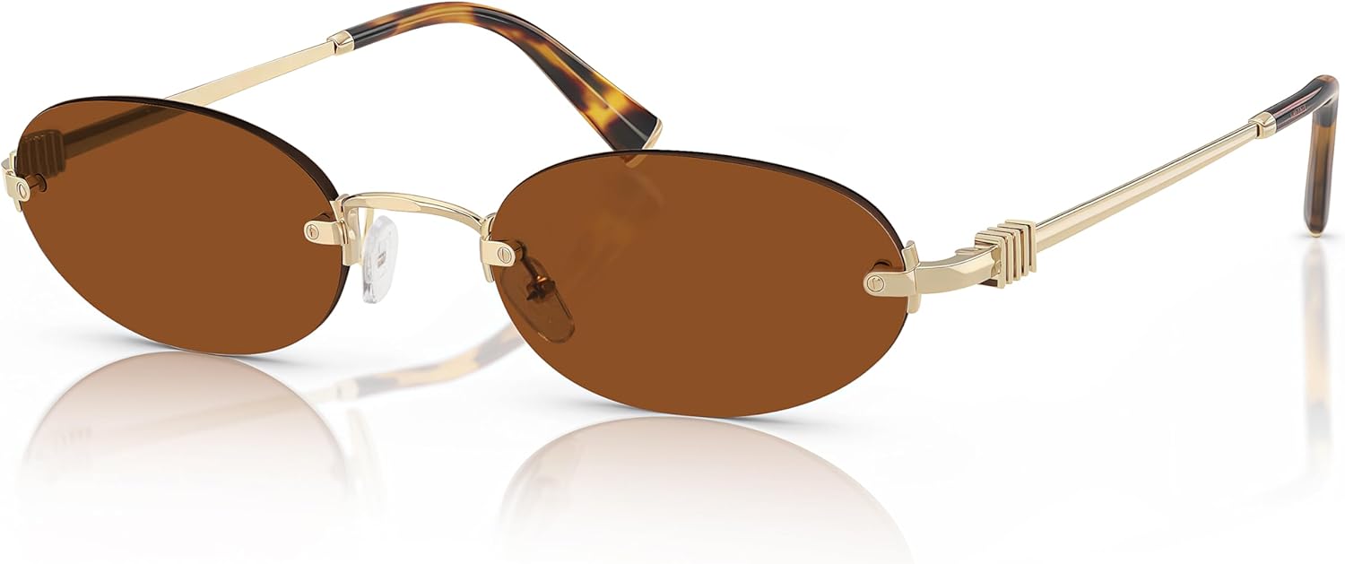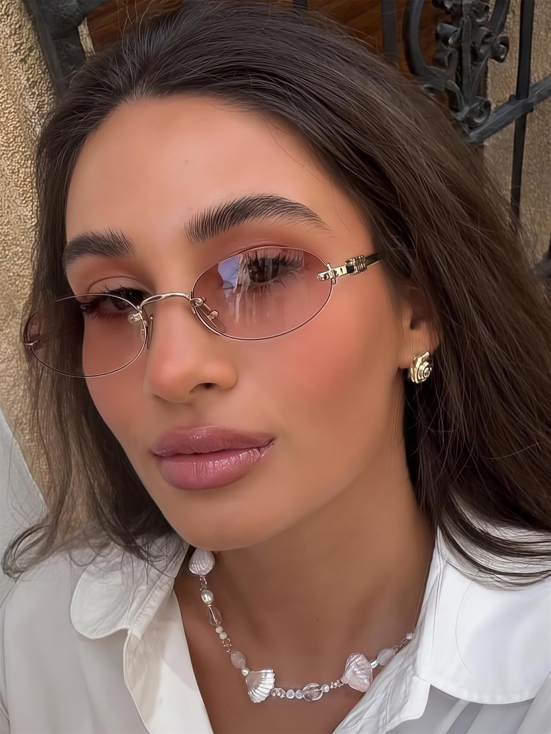 Retro Small Oval Sunglasses for Women Men, 2025 Trendy Rimless Sun Glasses Fashion Narrow Shades Y2K Designer Sunnies